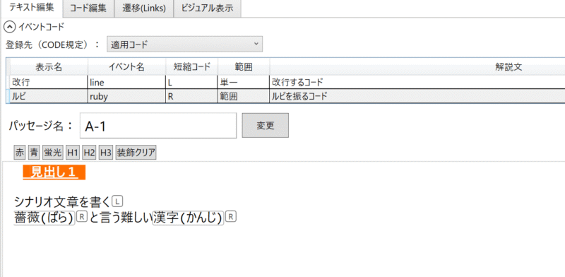 タグだらけの文章になると、肝心のシナリオが読みにくいんですよね。